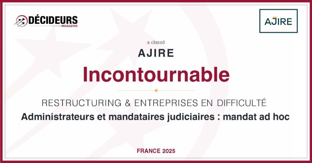 Référencée sur le plan national dans les meilleurs classements, AJIRE est, parmi les études françaises, une signature d’excellence et de confiance auprès des entreprises qu’elle accompagne.